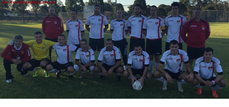 Gornji red: Bradley Svrcek, Slobodan Milanko, Aleksandar Zeljkovic, Stefan Heleta, Srdjan Gladanac, Miljan Pozder (kapiten), Dragoslav Draca, Dusko Dragas (trener). Donji red: Toplica Mihajlovic (trener), Nikola Pavic, Milivoj Macura, Milan Tamburic, Jovica Zrinjanin, Darko Simatovic, Sasa Milanko, Aleksandar Dragas.